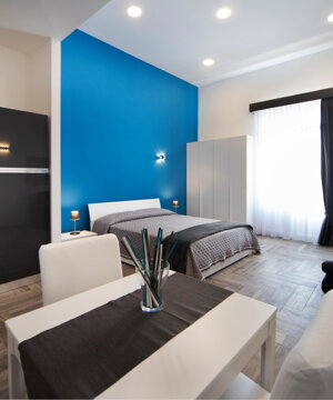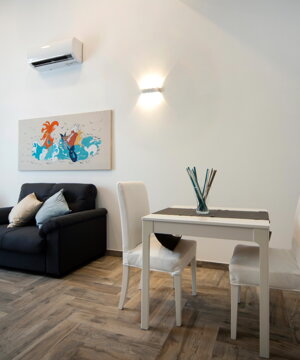 Appartamento mq. 51 balcone con affaccio sulla Via I° Settembre, infissi nuovi vetrocamera, composto da disimpegno, ripostiglio, monolocale, ampio bagno con grandi vetrate laterali ,box doccia dotata di soffione centrale e doccetta mobile, termoarredo, lavandino sospeso e bidet, asciugacapelli, letto matrimoniale con contenitore, armadio 4 ante, cassettiera, cucina completamente accessoriata con piano a induzione 4 fuochi e forno elettrico affiancata da estese finestre in legno con pertinenza su corte interna, zona pranzo e relax con divanetto 2 posti, smart tv, connessione internet wifi gratuita,aria condizionata, moderno impianto di illuminazione a soffitto led, porta blindata, serbatoio di acqua di esclusiva pertinenza dell' unita' immobiliare.